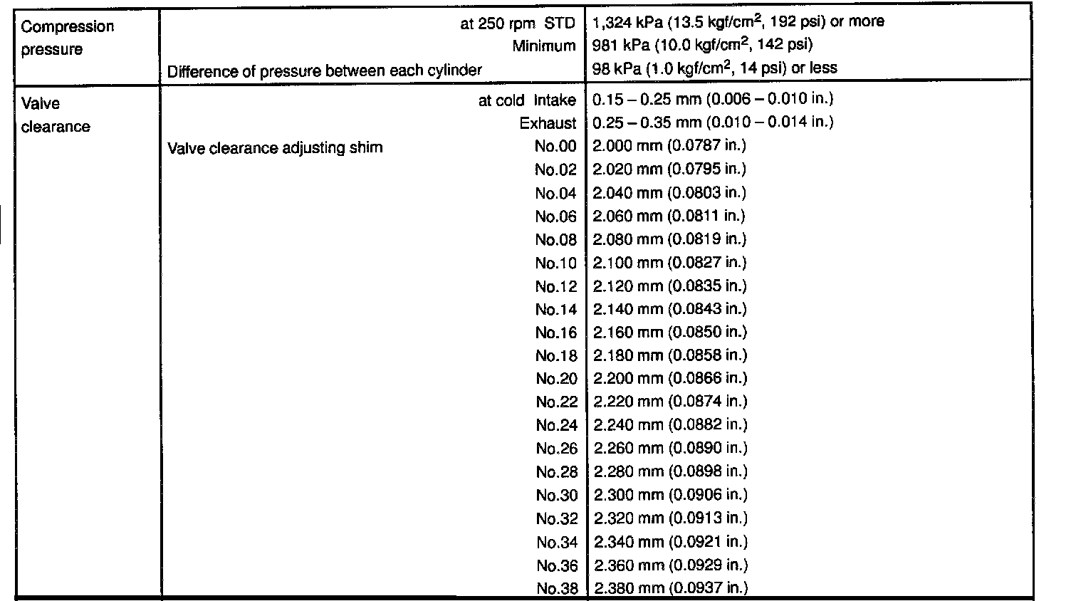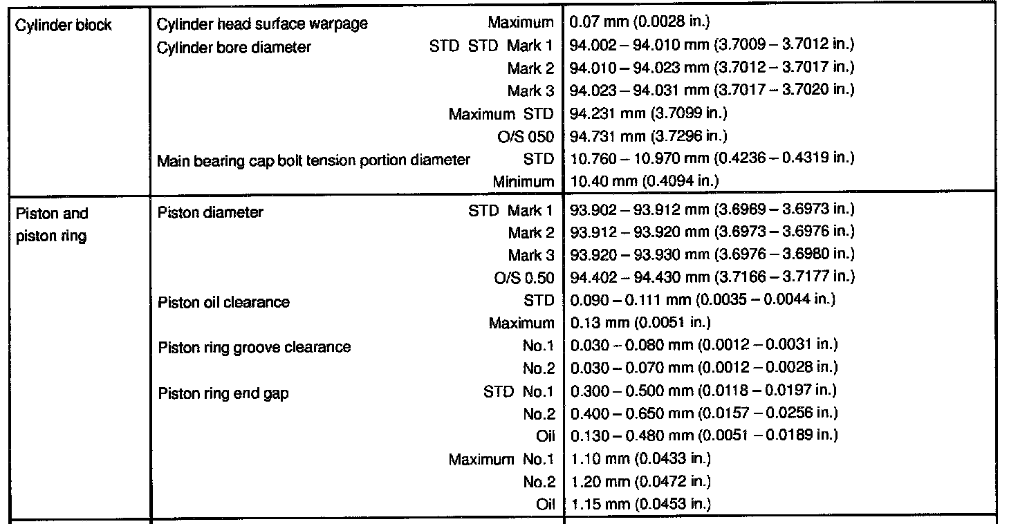 2UZ-FE Engine Mechanical Data: