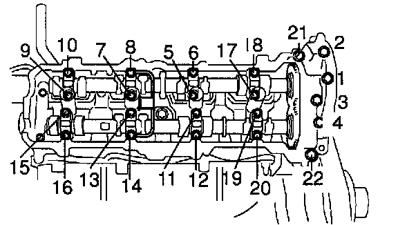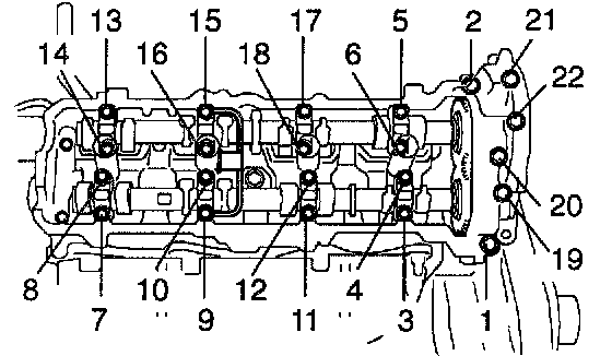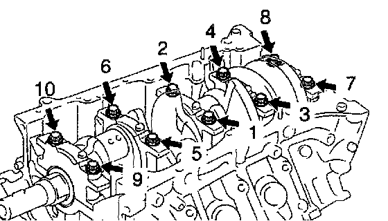 LH Camshaft Bearing Cap Bolts Removal Sequence: