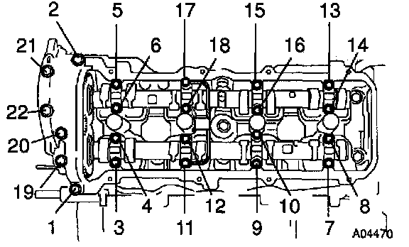 RH Camshaft Bearing Cap Bolts Removal Sequence: