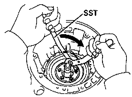 b. Install the one-way clutch while turning the planetary gear clockwise with SST.