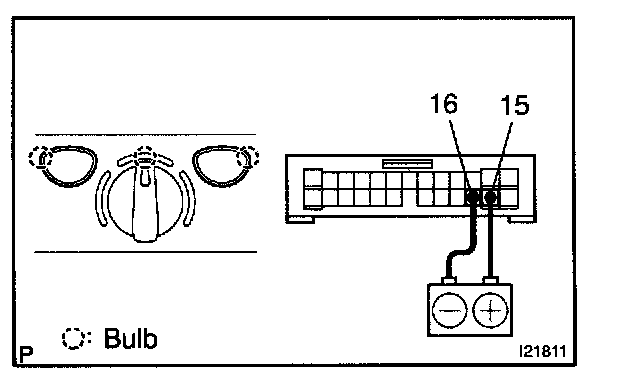Connect the positive (+) lead from the battery to terminal 15 and negative (-) lead to terminal 16 then check that the illuminations lights up.