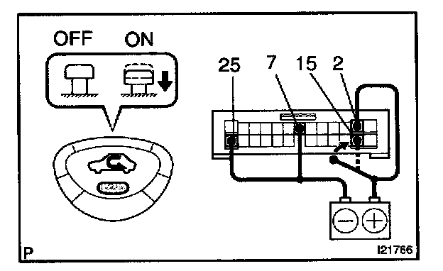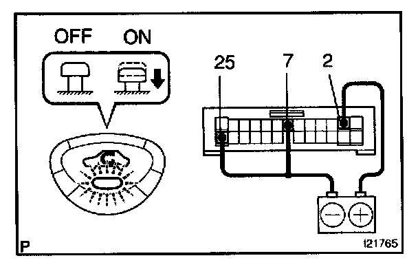 a. Connect the positive (+) lead from the battery to terminal 2 and the negative (-) lead to terminal 7, 25 while press the switch.