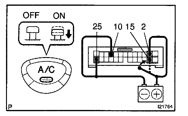 a. Connect the positive (+) lead from the battery to terminal 2 and negative (-) lead to terminal 10, 25 while press the switch