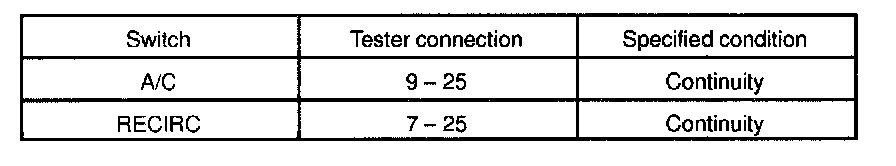 Check the continuity between terminals while switch is pressed, as shown in the chart.