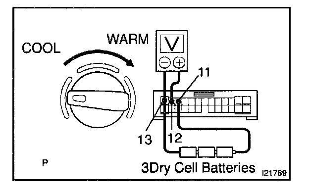 d. Gradually turn the switch from "MAX. WARM" side to "MAX. COOL" side and check that the voltage increase from 0 to 4.5 V.
