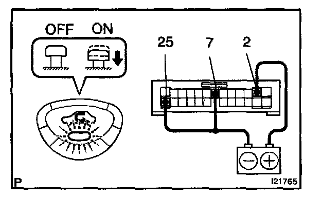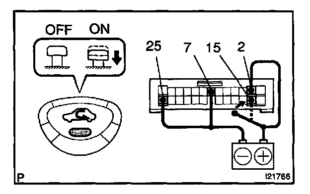 a. Connect the positive (+) lead from the battery to terminal 2 and the negative (-) lead to terminal 7, 25 while press the switch.
