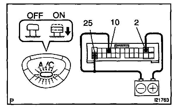 a. Connect the positive (+) lead from the battery to terminal 2 and negative (-) lead to terminal 10, 25 while press the switch.