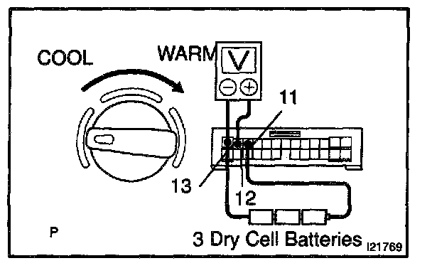 d. Gradually turn the switch from "MAX. WARM" side to "MAX. COOL" side and check that the voltage increase from 0 to 4.5 V.