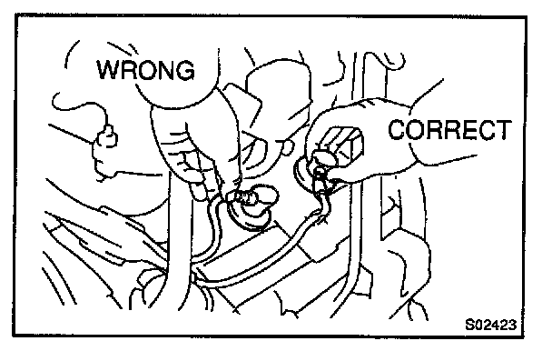 NOTE: Check that the holder is correctly installed to the grommet and distributor cap as shown in the illustration.