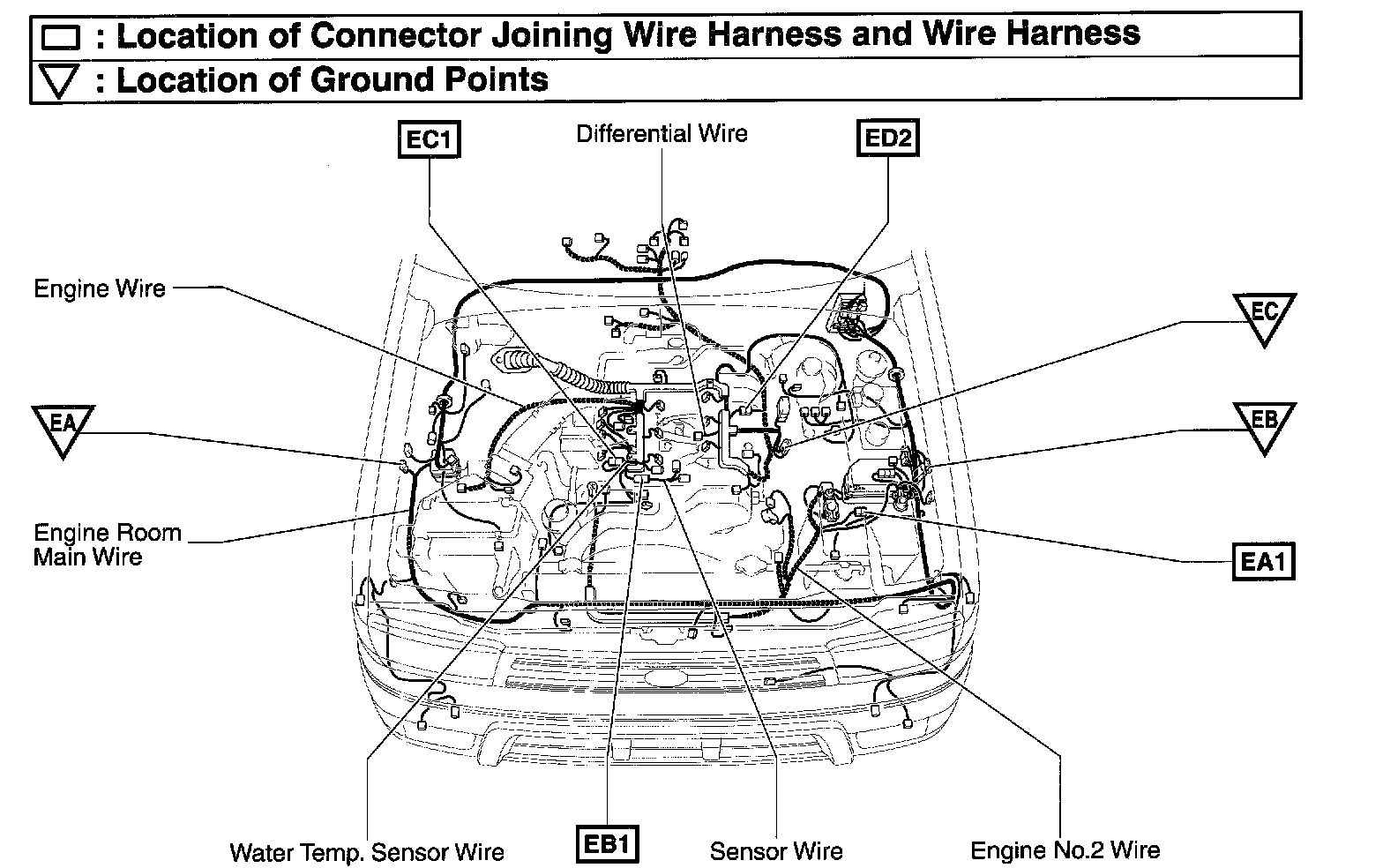 EC1 Engine Wire and Water Temp. Sensor Wire (Front Side of Cylinder Head Cover Right)