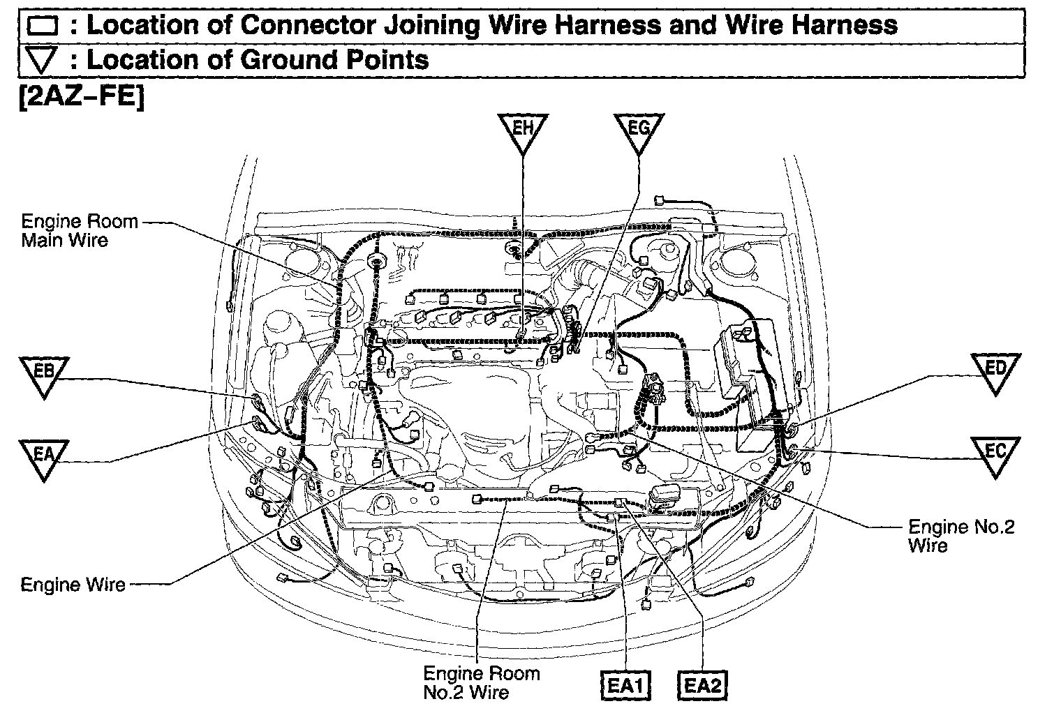 EA2 Engine Room Main Wire and Engine Room No.2 Wire (Radiator Side Support LH)