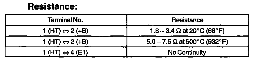 If the resistance is not as specified, replace the sensor.