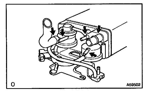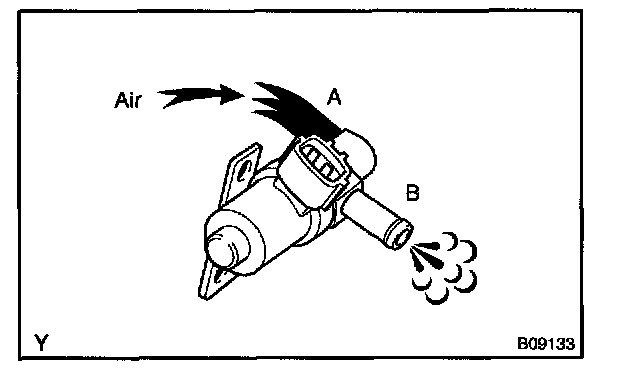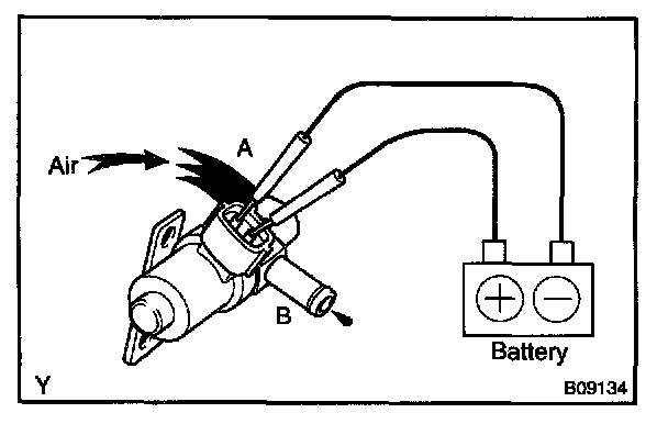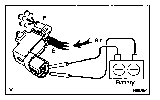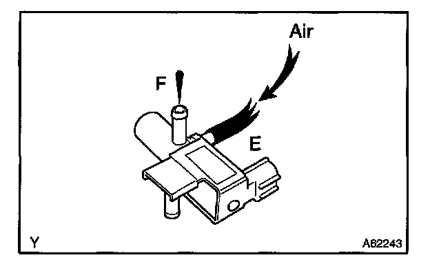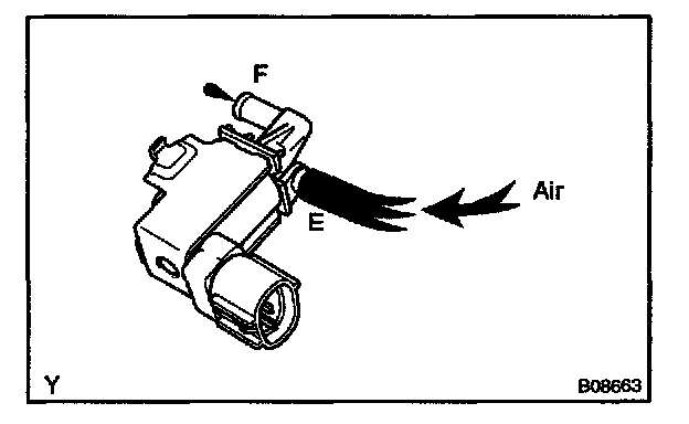 5. Check that air flows from ports E to F. If operation is not as specified, replace the VSV.