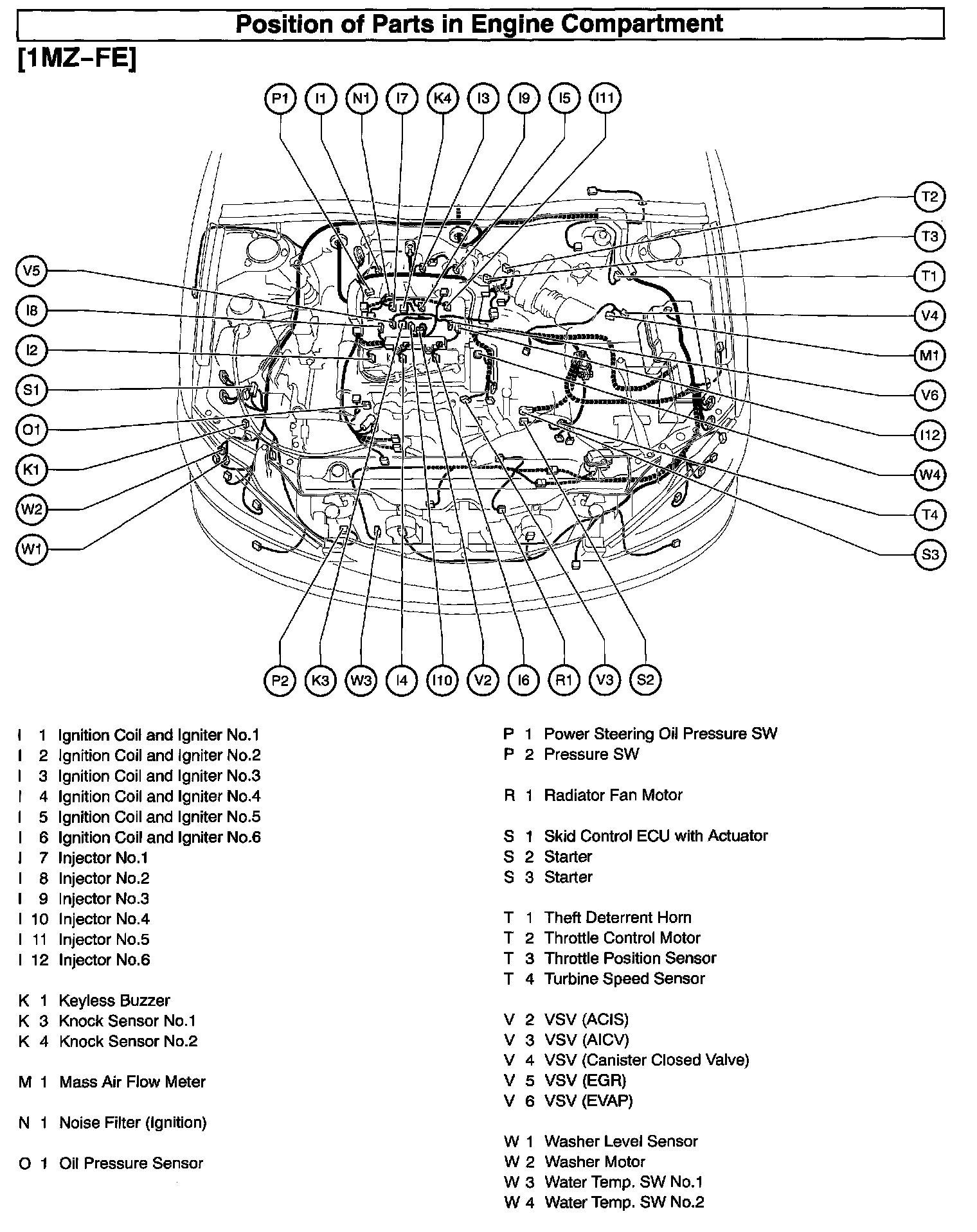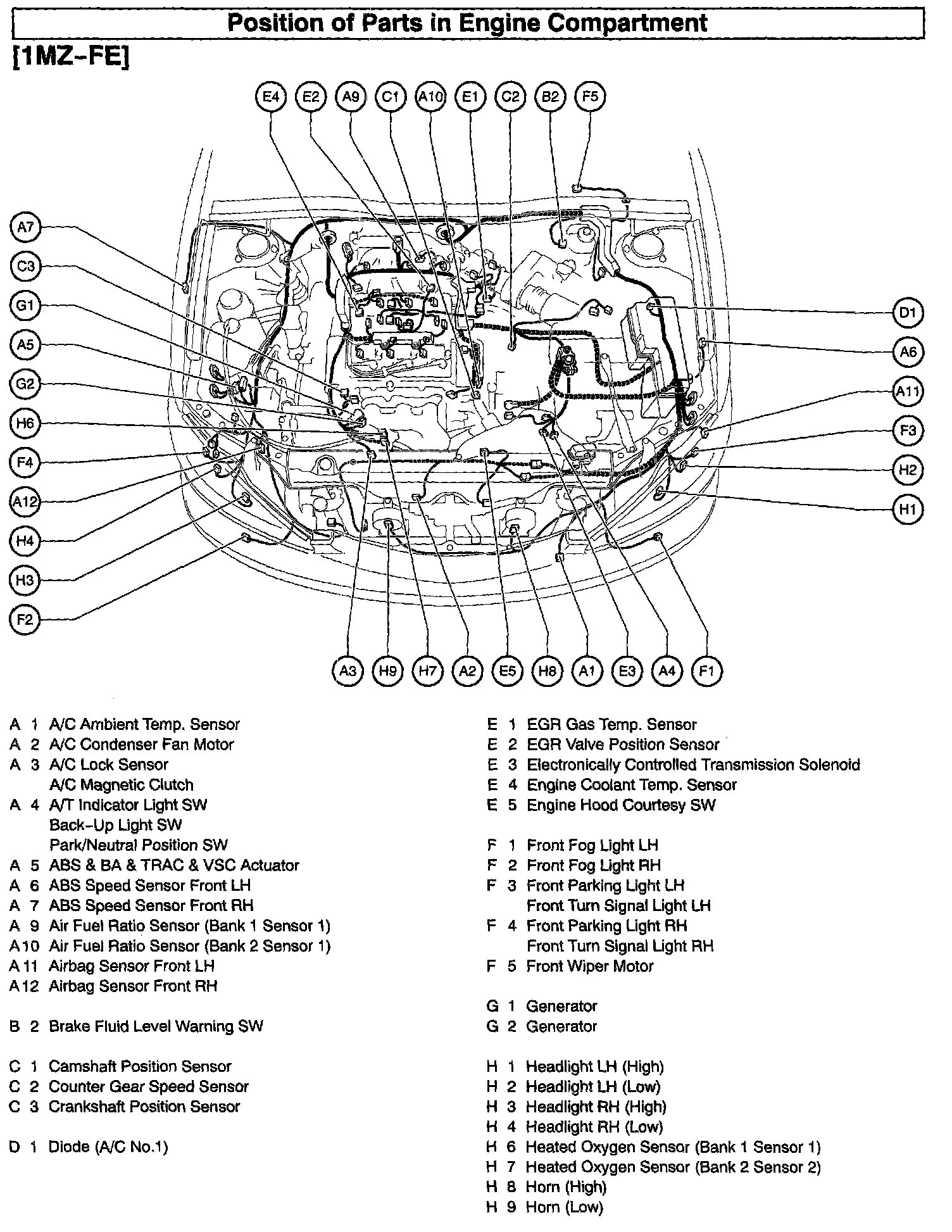 Position Of Parts Engine Compartment (1MZ-FE) Part 1: