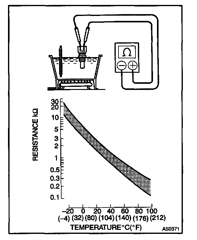 NOTE: In case of checking the water temperature sensor in the water, be careful not to allow water to go into the terminals, and after checking, wipe out the sensor.
