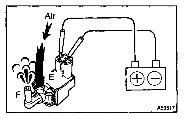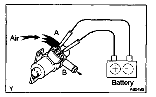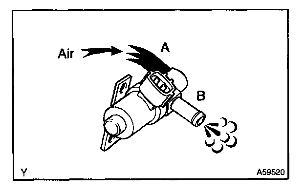 5. Check that air does not flow from ports A to B. If operation is not as specified, replace the VSV.
