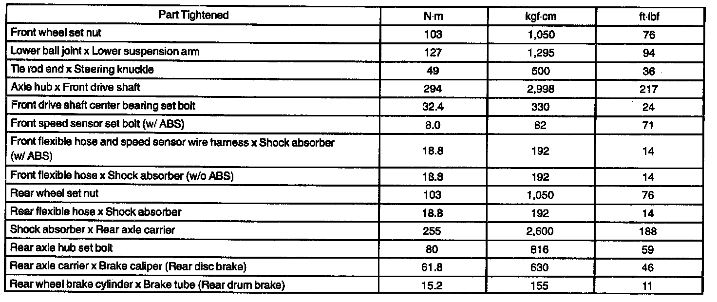 DRIVE SHAFT/PROPELLER SHAFT/AXLE SERVICE DATA: