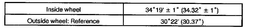 If the right and left inside wheel angles differ from the specified value, check the right and left rack end lengths.