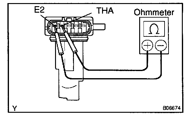 Using an ohmmeter, measure the resistance between terminals THA and E2