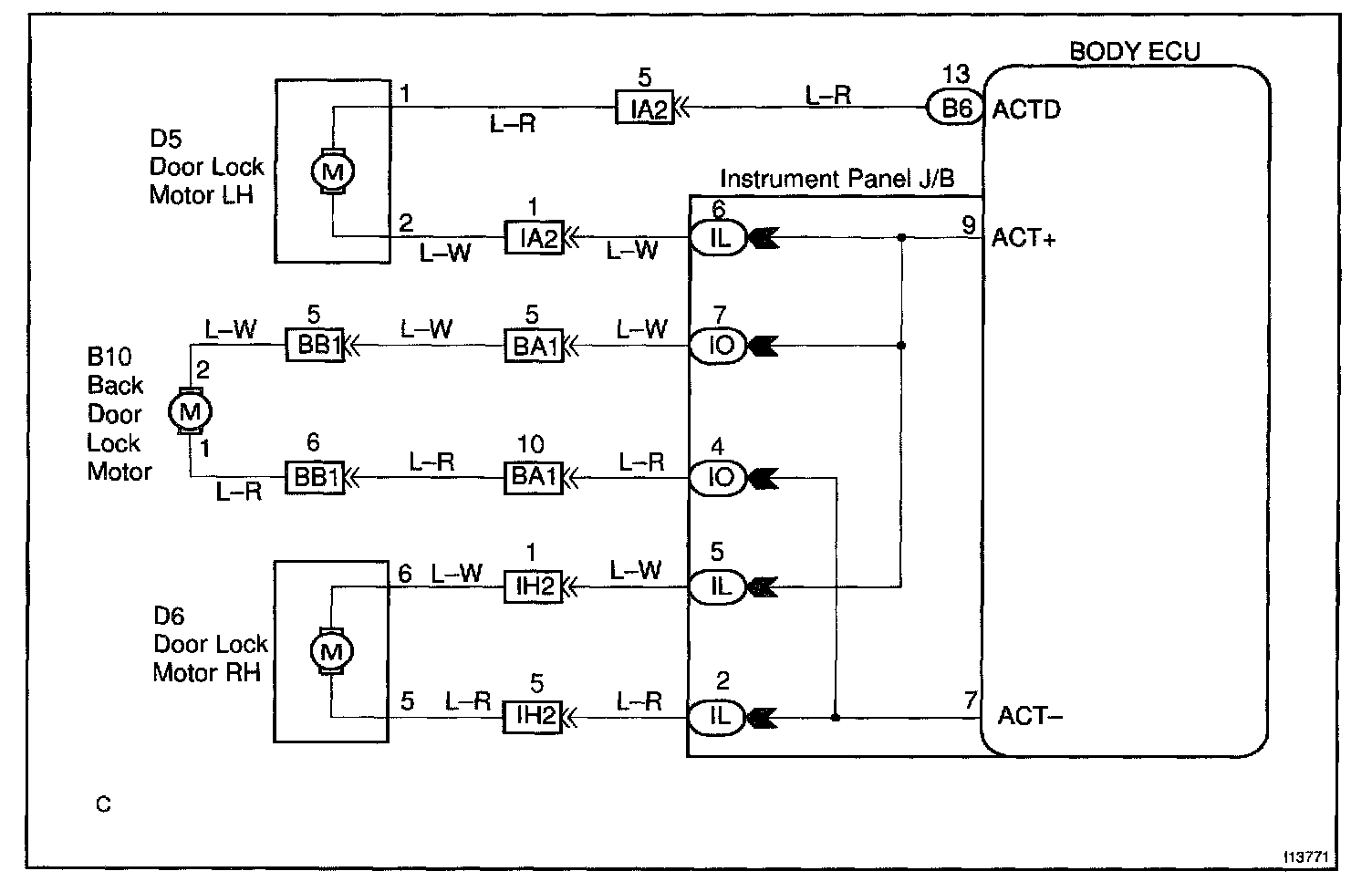 When the door switch is set to LOCK, the body ECU outputs a signal to lock all of the doors.