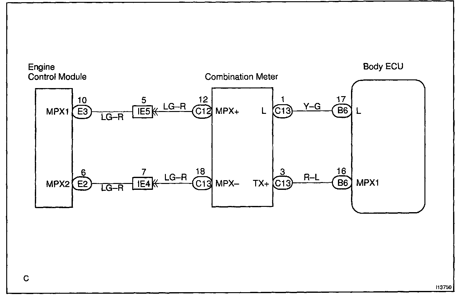 Signals are transmitted between the ECM and combination meter through the communication circuit