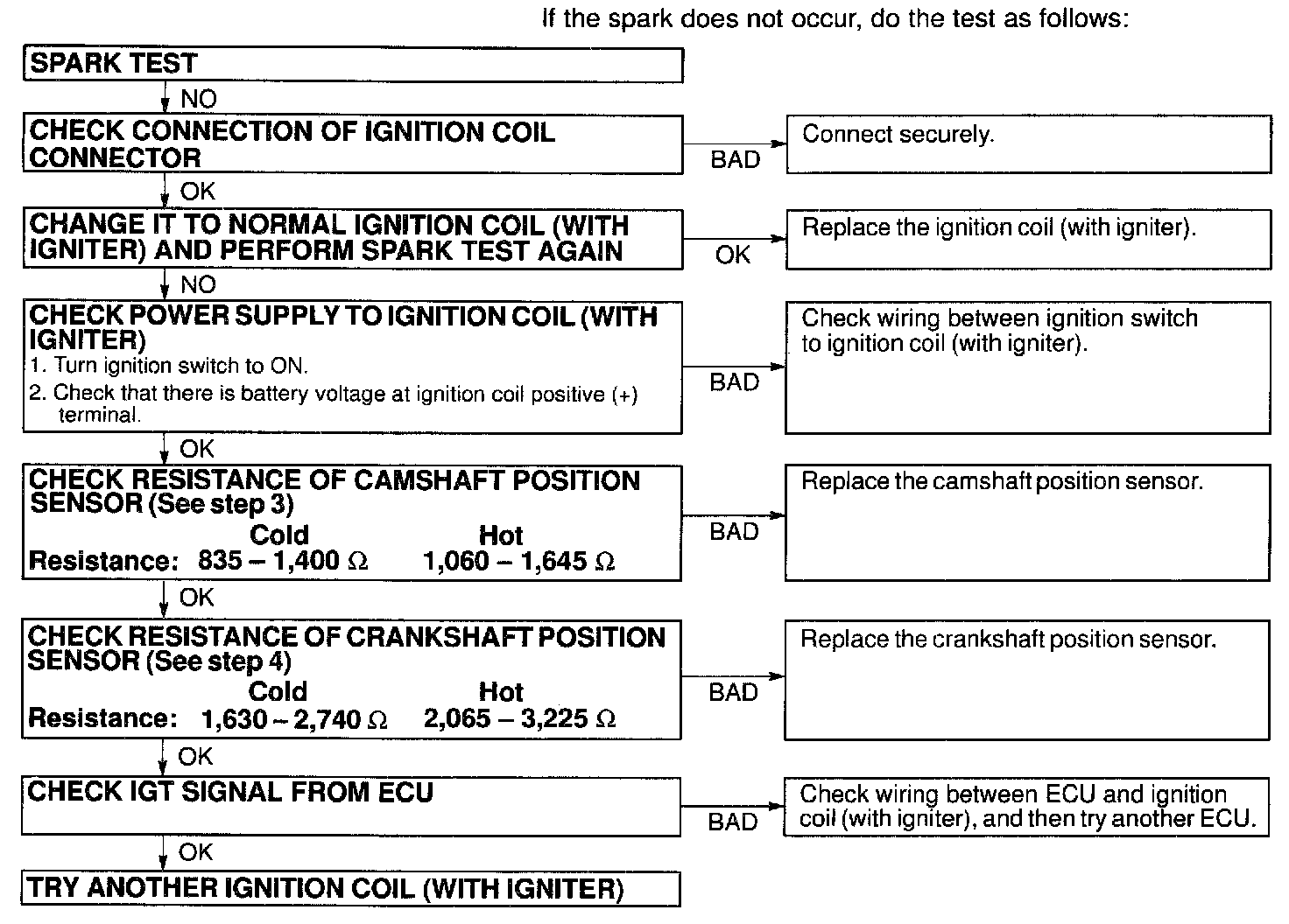 6. Check if spark occurs while engine is being cranked.