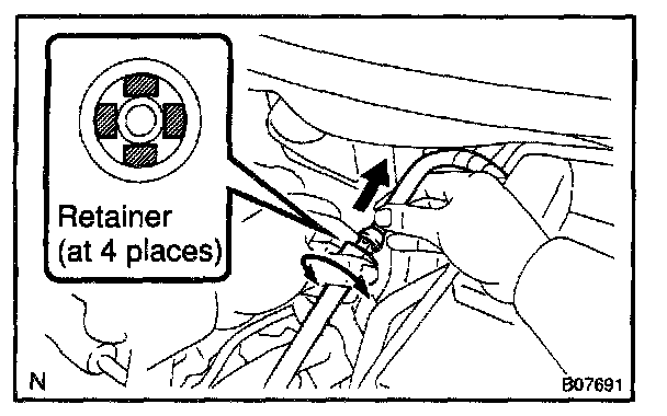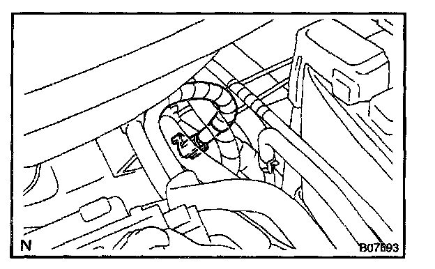 HINT: Any diagnostic trouble code retained by the computer will be erased when the negative (-) terminal cable is removed from the battery. Therefore, if necessary, read the diagnosis before removing the negative (-) terminal cable from the battery.