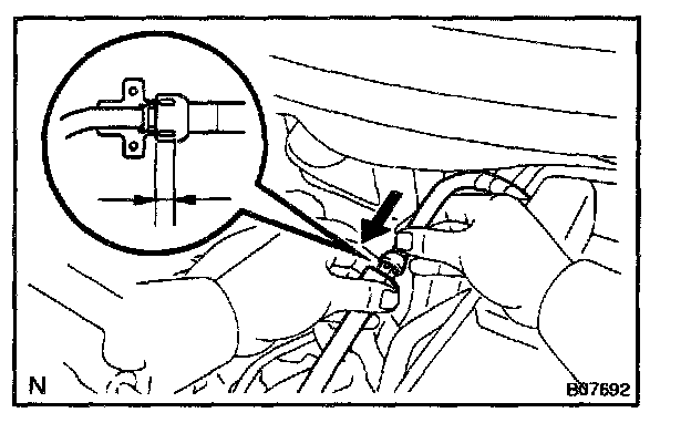 6. Install the fuel pipe clamp.