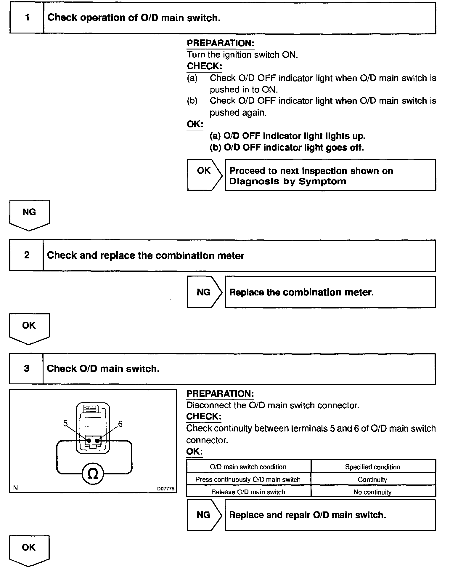 O/D Main Switch & O/D OFF Indicator Light Circuit
