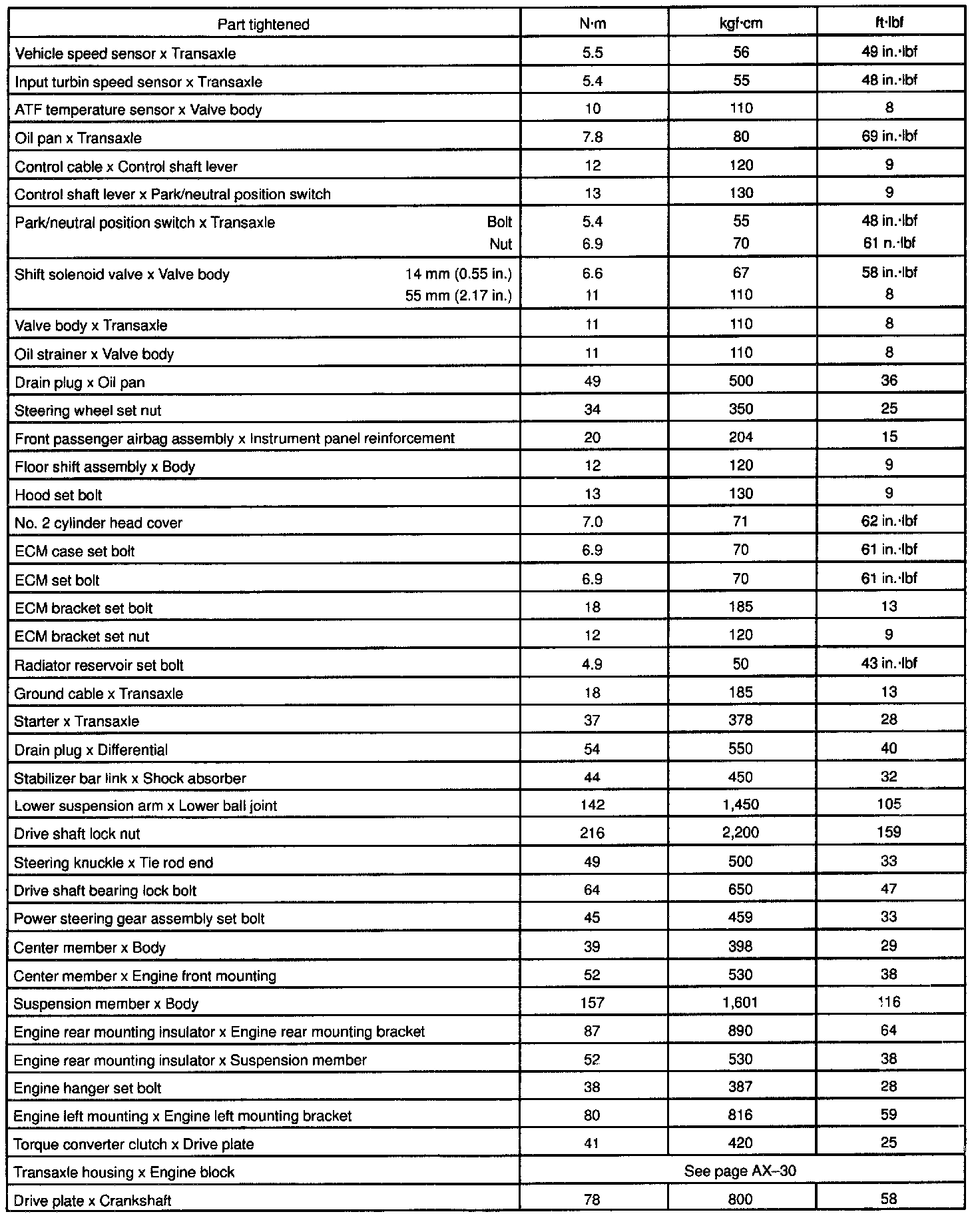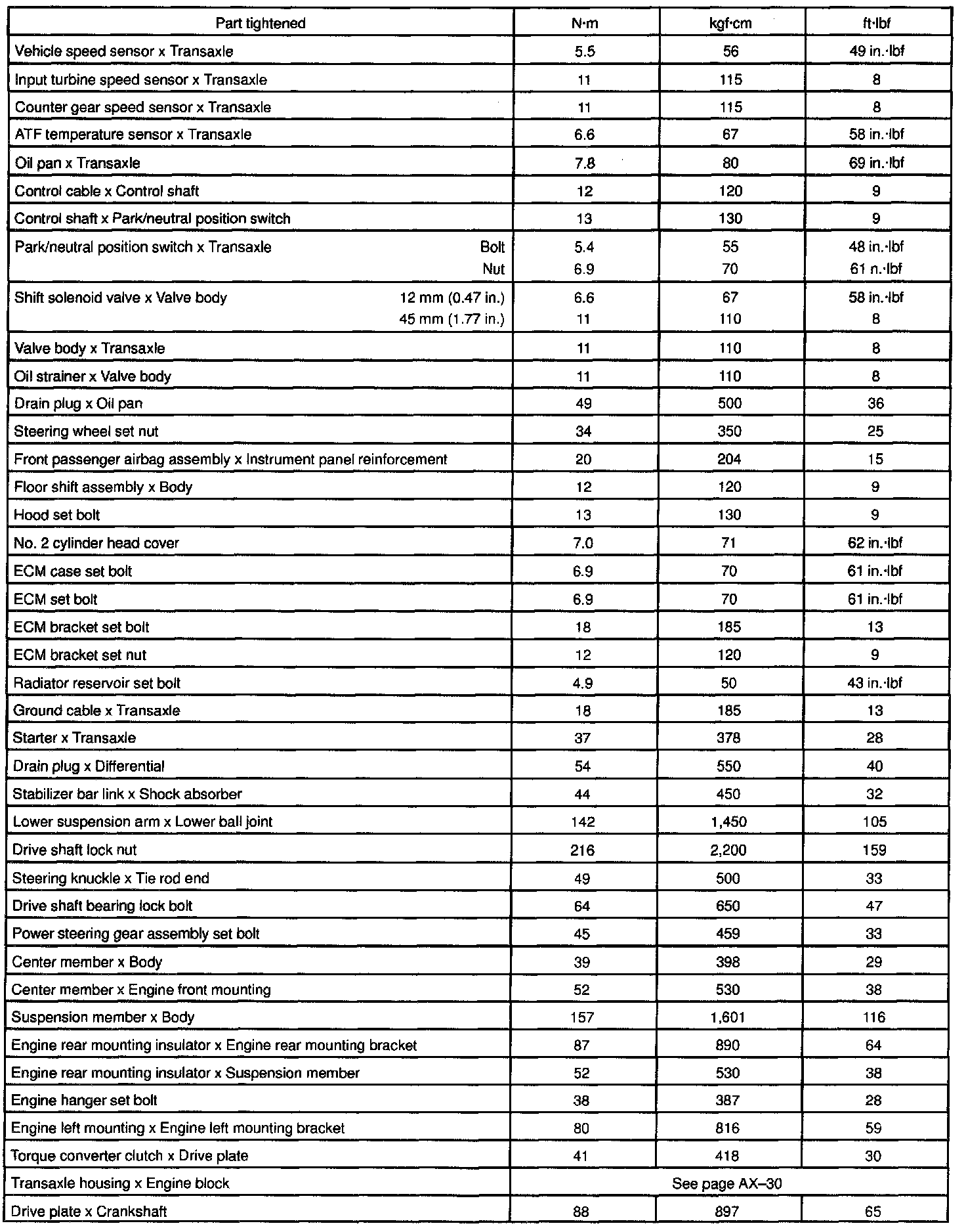 TORQUE SPECIFICATION: