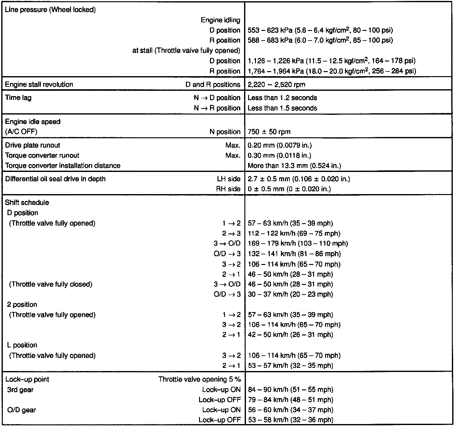 AUTOMATIC TRANSAXLE (U240E) SERVICE DATA: