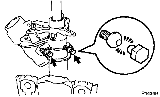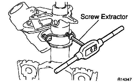 c. Using a screw extractor, remove the 2 bolts, column upper bracket and column upper clamp.