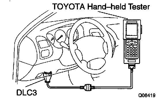2. CONNECT TOYOTA HAND-HELD TESTER OR OBD II SCAN TOOL
