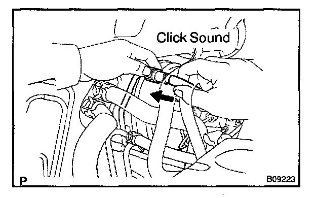 4. Match the axis of the connector with axis of the pipe, and push in the connector until retainer makes a "click" sound. In case that the connections is tight, apply little amount of new engine oil on the tip of the pipe.