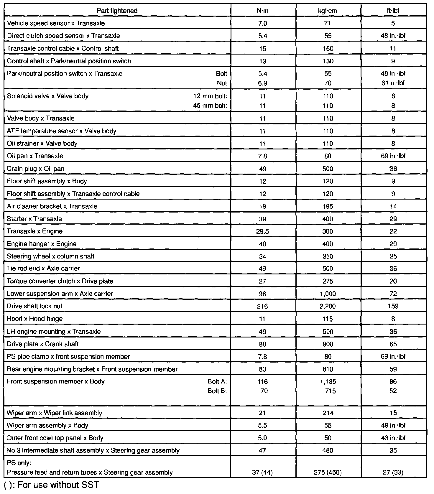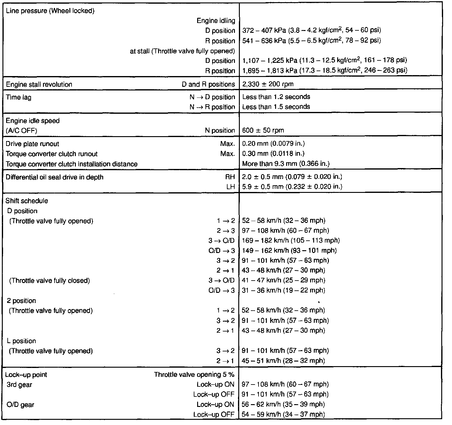 AUTOMATIC TRANSAXLE SERVICE DATA:
