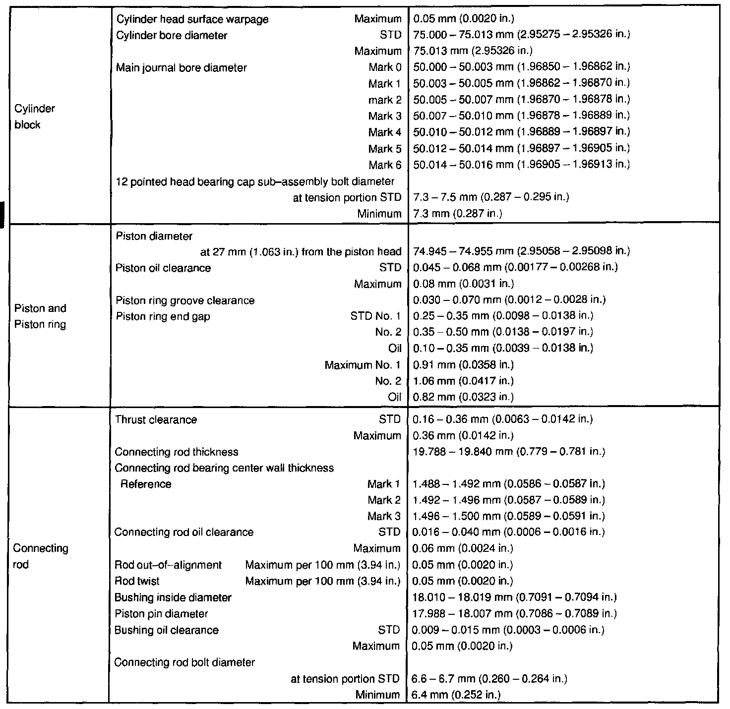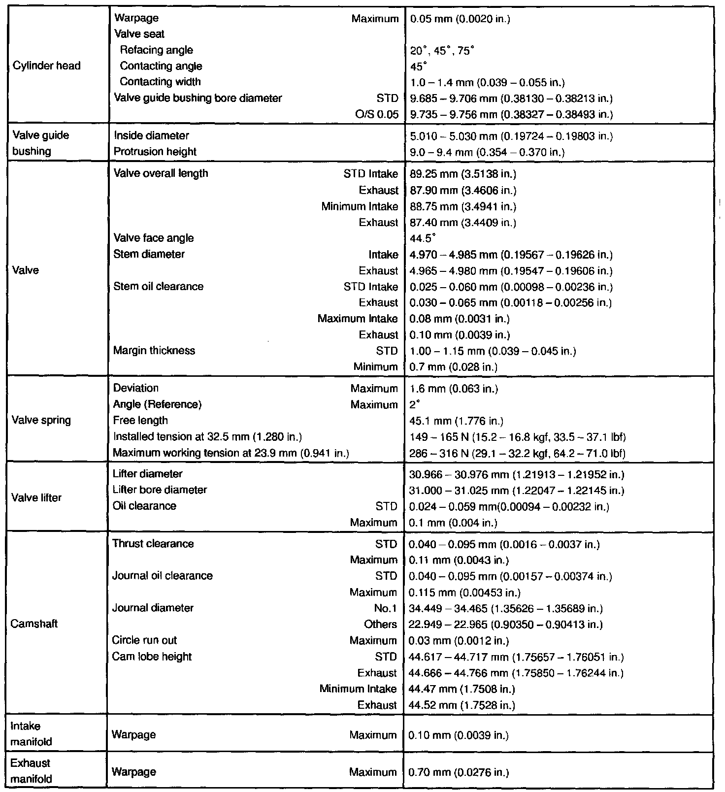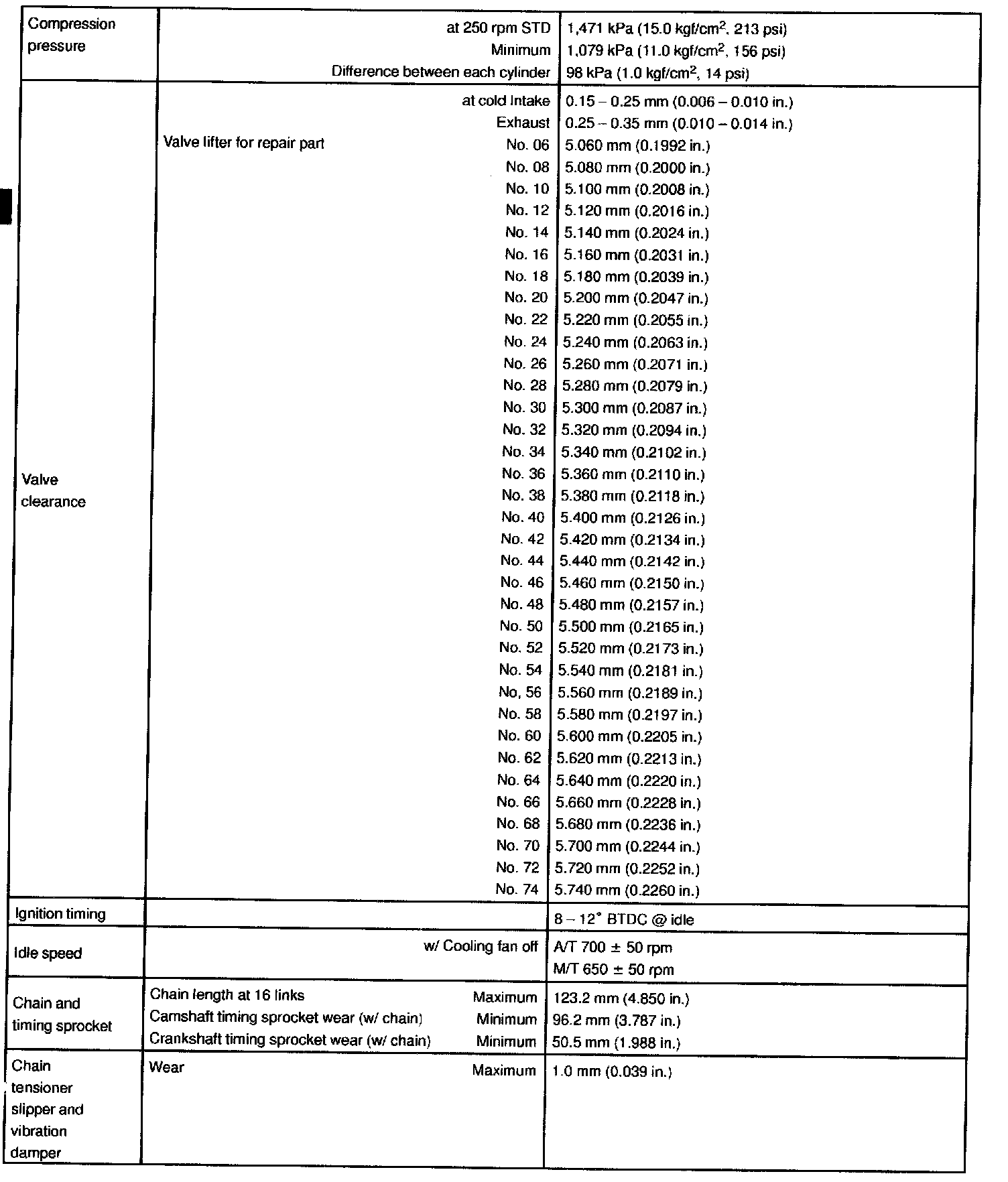 ENGINE MECHANICAL SERVICE DATA: