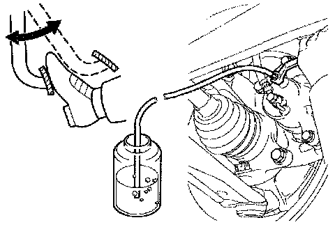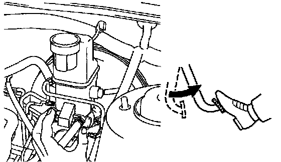 b. Depress the brake pedal several times, then loosen the bleeder plug with the pedal held down.