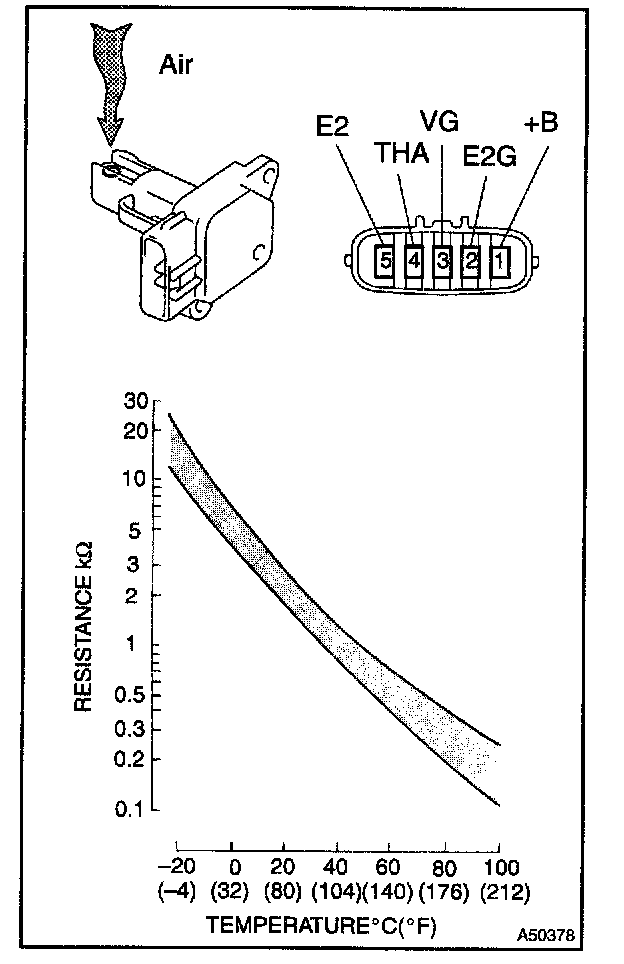 1. Using an ohmmeter, measure the resistance between terminals 4 (THA) and 5 (E2).