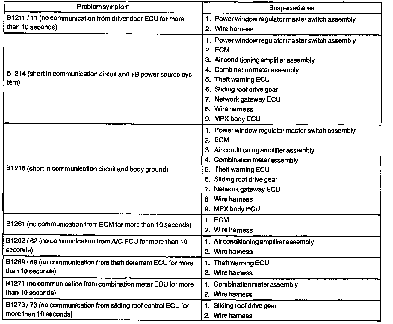PROBLEM SYMPTOMS TABLE