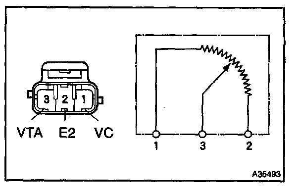 2. Using an ohmmeter, measure the resistance between terminals VC and E2.