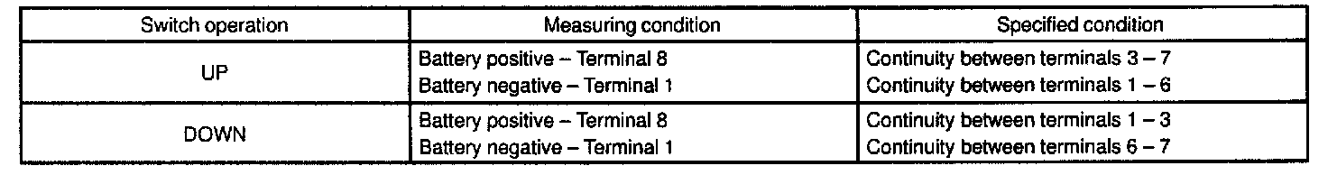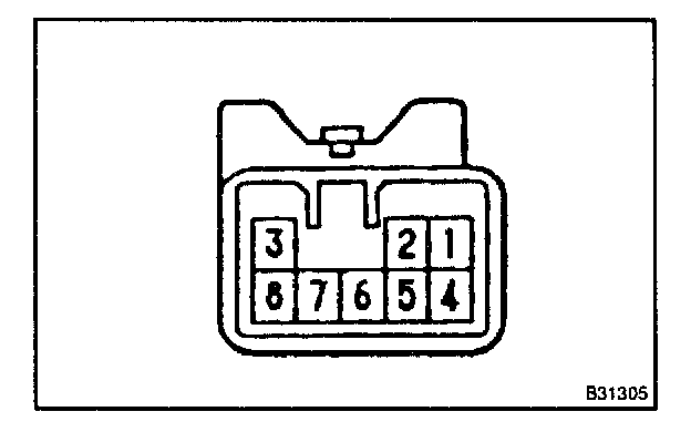 Check the continuity between each terminal when the battery positive voltage is applied between terminals 1 and 8.