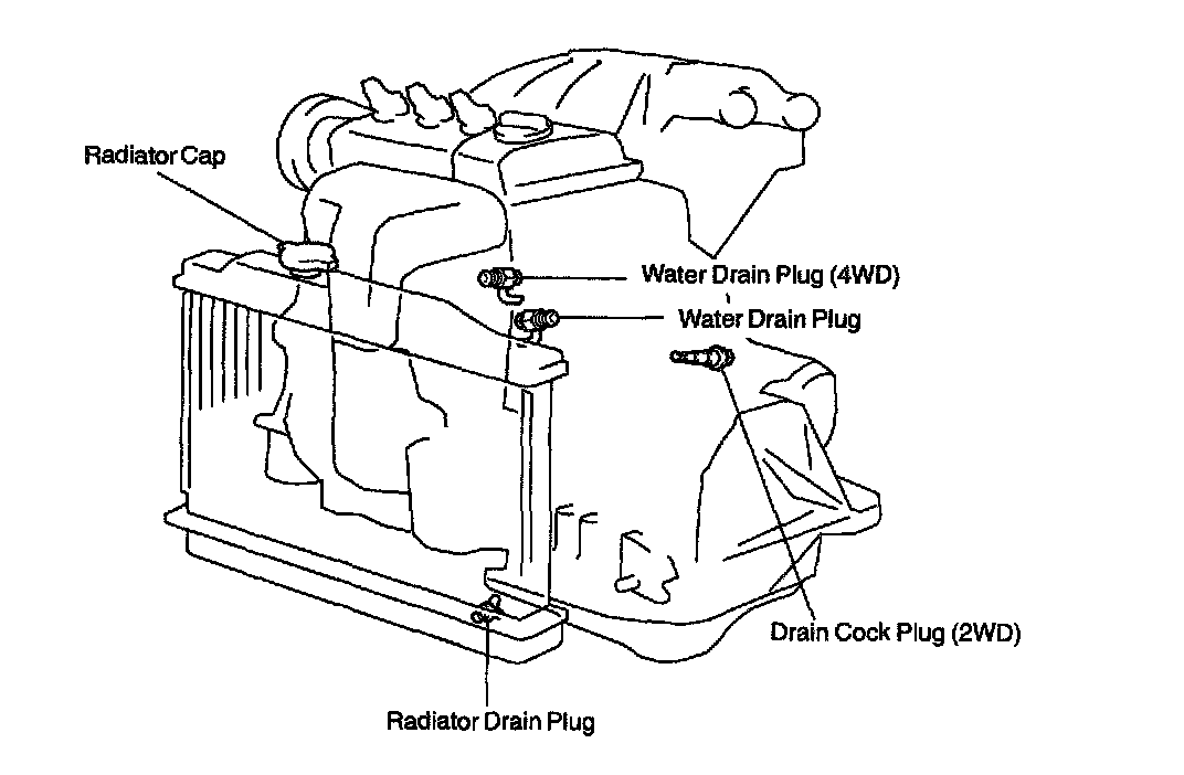 a. Tighten the radiator drain plug, and pour coolant into radiator until it overflows.
