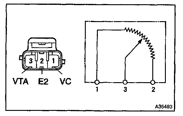 2. Using an ohmmeter, measure the resistance between terminals VC and E2.