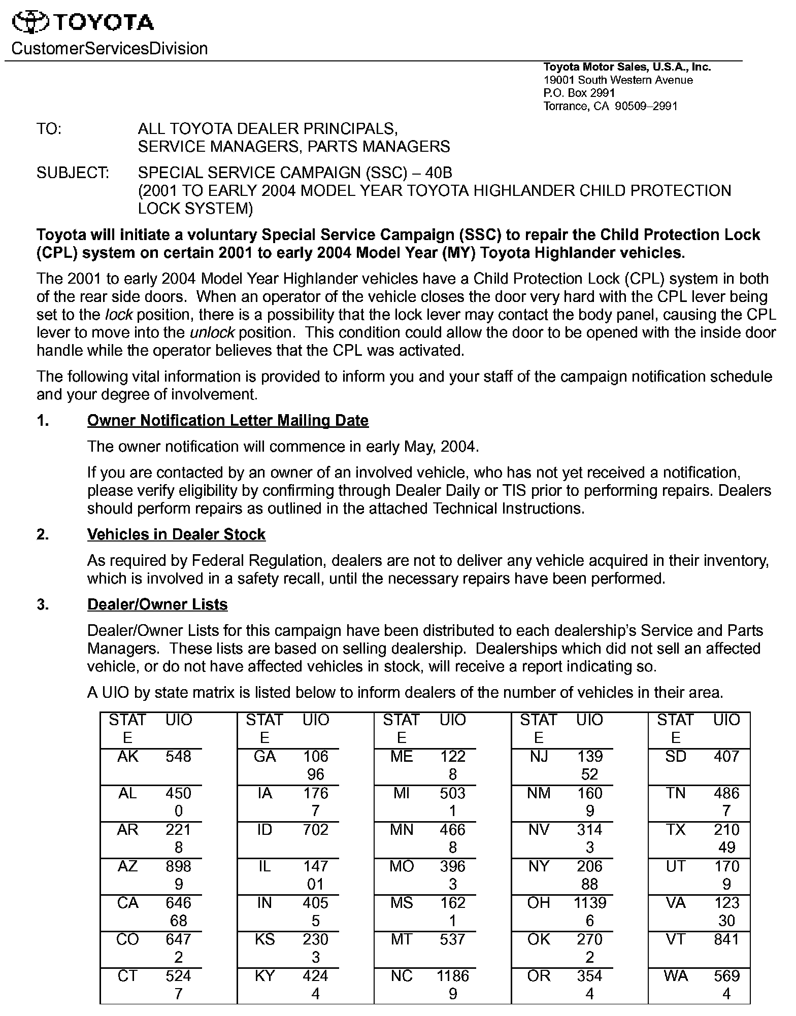 Highlander 2WD V6-3.0L (1MZ-FE)