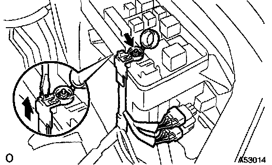 2. Using a screwdriver, unlock the engine room junction block. Separate the engine wire by pulling it upward.