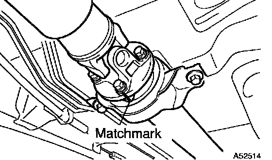 a. Align the matchmarks on both the flanges of the front propeller shaft and intermediate shaft, then install and tighten the 4 bolts, washers and nuts.