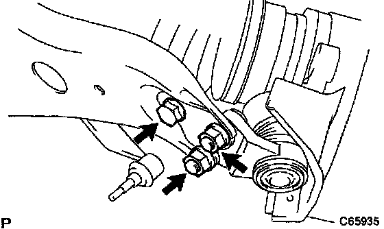 b. Install the suspension lower arm with the bolt and the 2 nuts.
