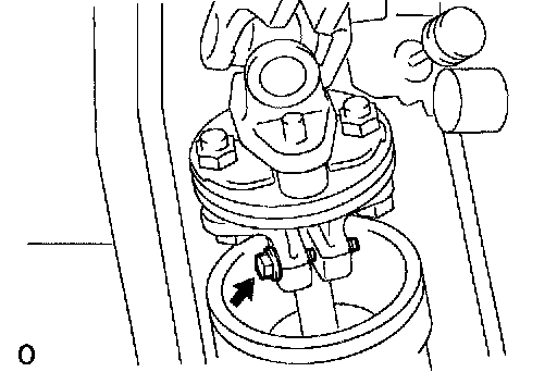 a. Remove the bolt and 2 nuts shown in the illustration.