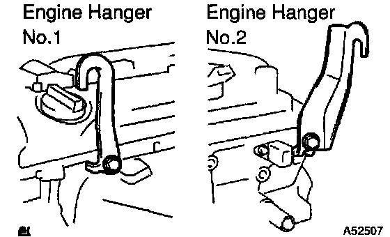 e. Install the 2 engine hangers as shown in the illustration.