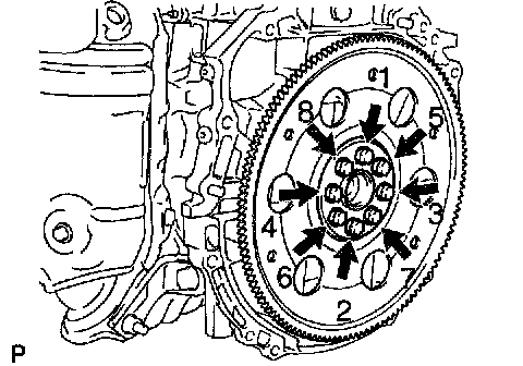 a. Fix the crank shaft, and install the 6 set bolts.